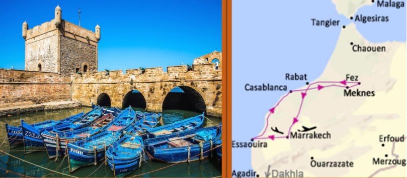 Marrakech, Essaouira, El Jadida, Casablanca, Meknes, Fez, Rabat, Marrakech